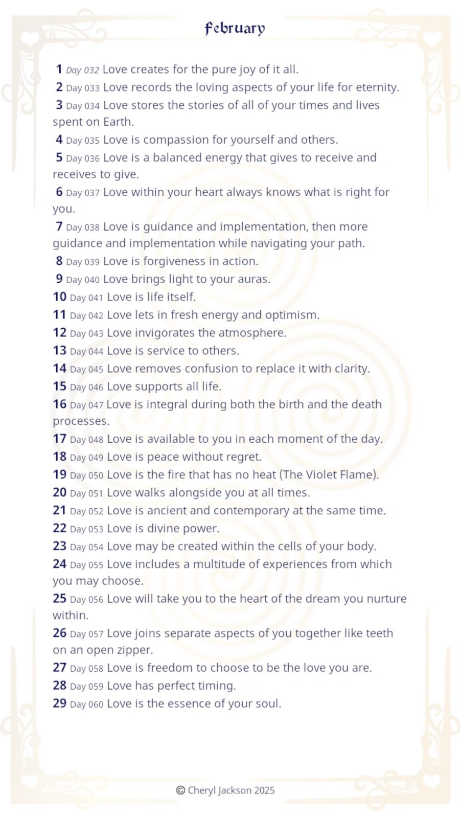 Each message starts with the word ‘love.’ If, as you read the message, that word seems oddly placed, remember that it may be a substitute for ‘God,’ The Angels,’ ‘Source,’ or the name of other very high vibrational beings. The intent is to broaden your perspective of love as more than an emotion.