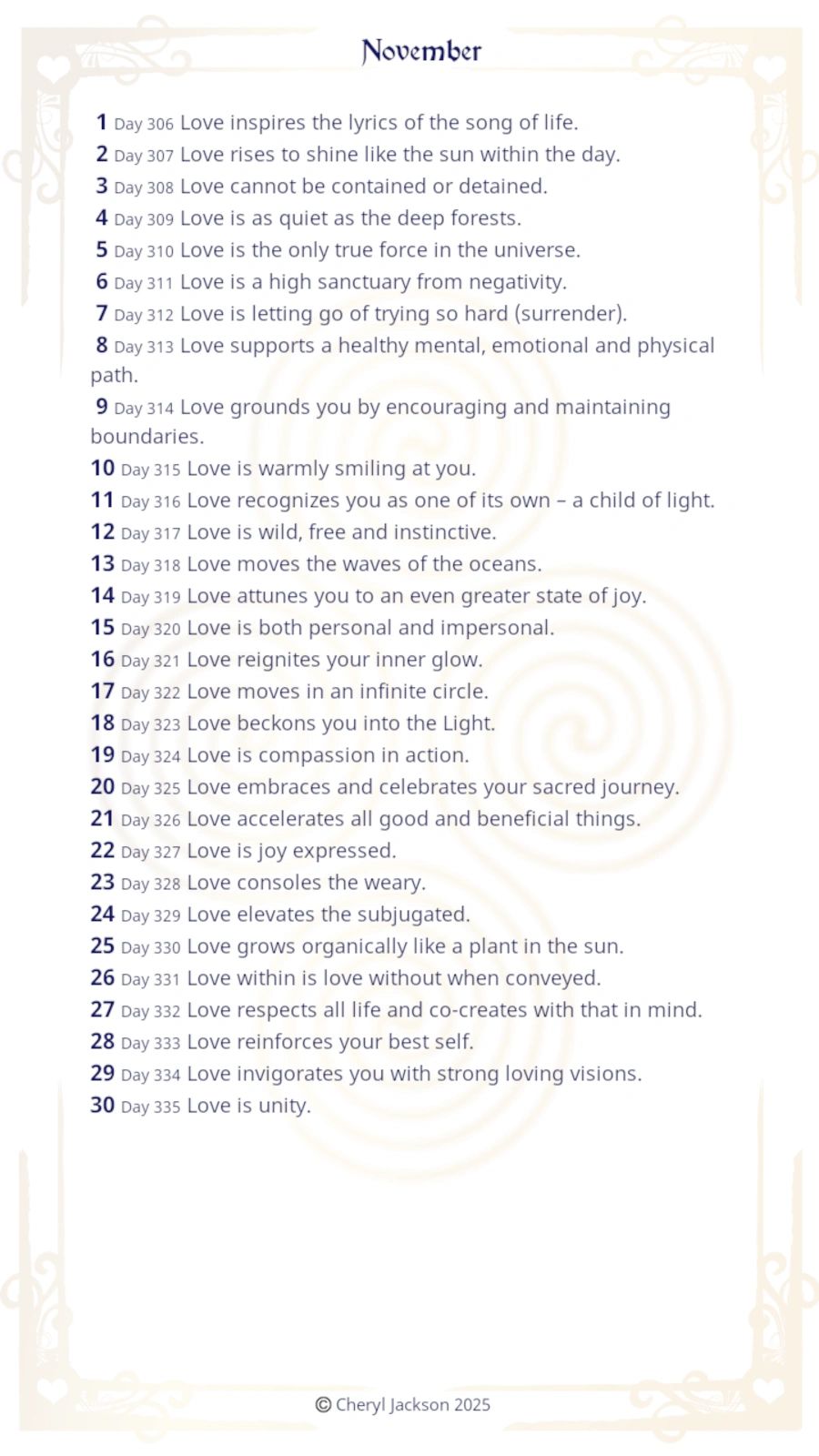 Each message starts with the word ‘love.’ If, as you read the message, that word seems oddly placed, remember that it may be a substitute for ‘God,’ The Angels,’ ‘Source,’ or the name of other very high vibrational beings. The intent is to broaden your perspective of love as more than an emotion.