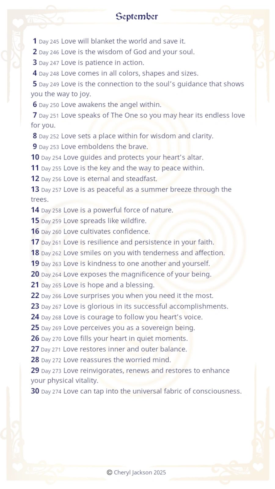Each message starts with the word ‘love.’ If, as you read the message, that word seems oddly placed, remember that it may be a substitute for ‘God,’ The Angels,’ ‘Source,’ or the name of other very high vibrational beings. The intent is to broaden your perspective of love as more than an emotion.